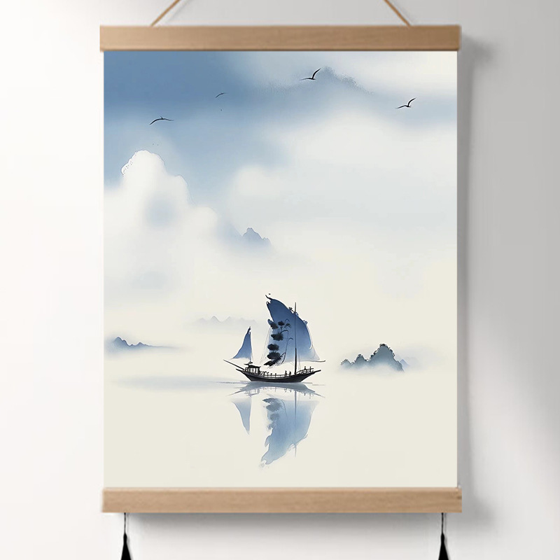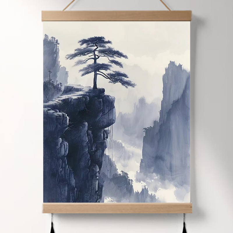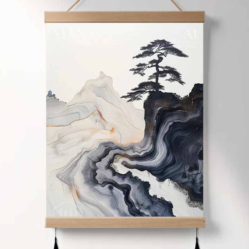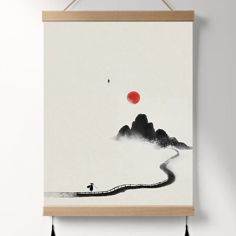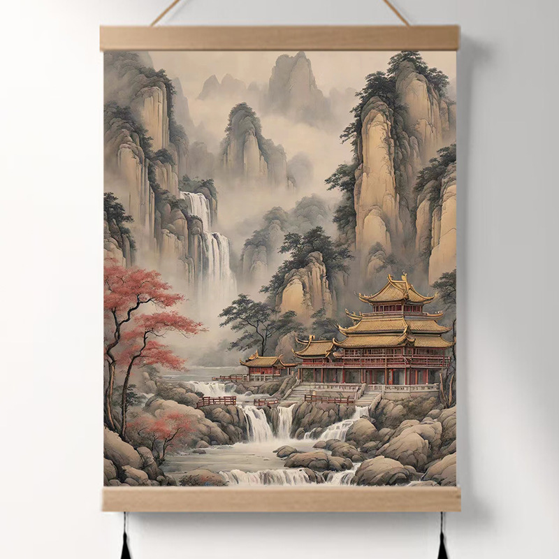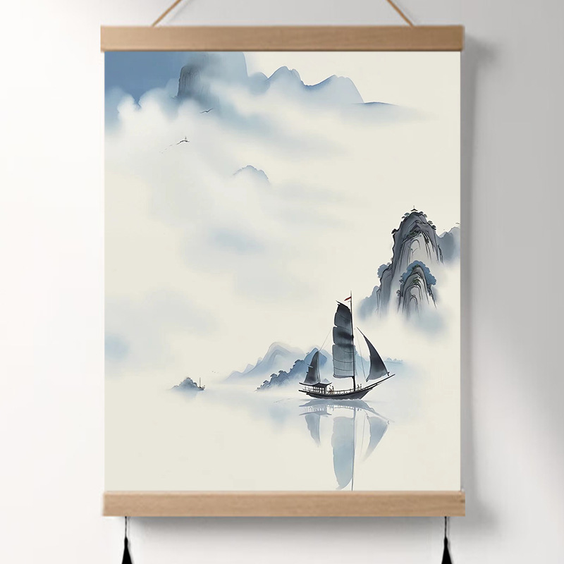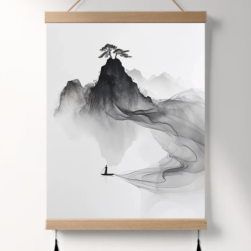 Главная страница > Винтажная рулонная картина для декора гостиной, каллиграфическая живопись для фоновой стены офиса, пейзажная картина, привлекающая удачу, настенная рулонная картина.