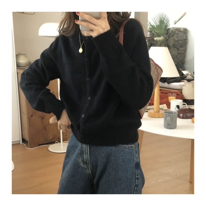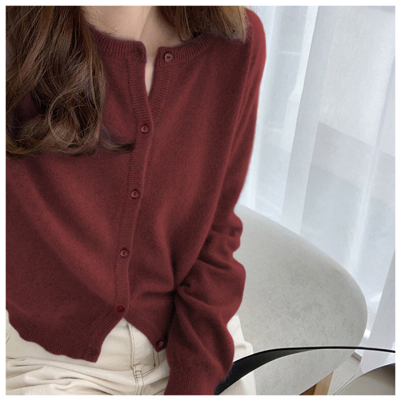 Главная страница > Женский свитер в корейском стиле, нежный фиолетовый, с круглым вырезом и свободным вязаным кардиганом в стиле ретро, в стиле ленивого стиля