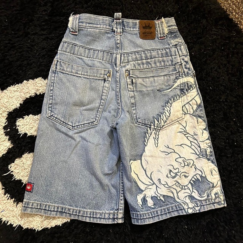 Главная страница > Трансграничные европейские и американские ретро уличные джинсовые шорты с принтом в стиле хип-хоп, мужские весенне-летние нишевые свободные широкие брюки пять четвертей