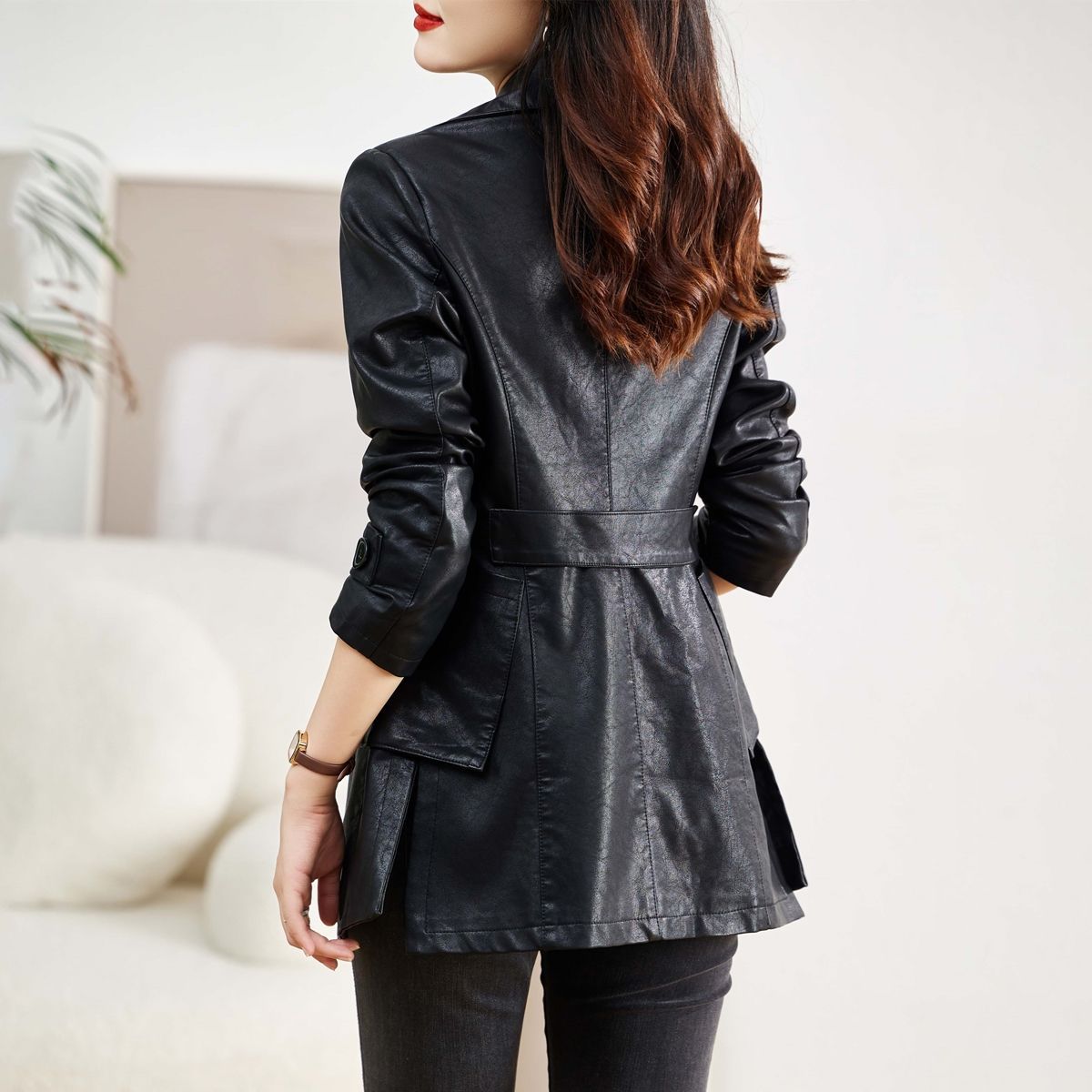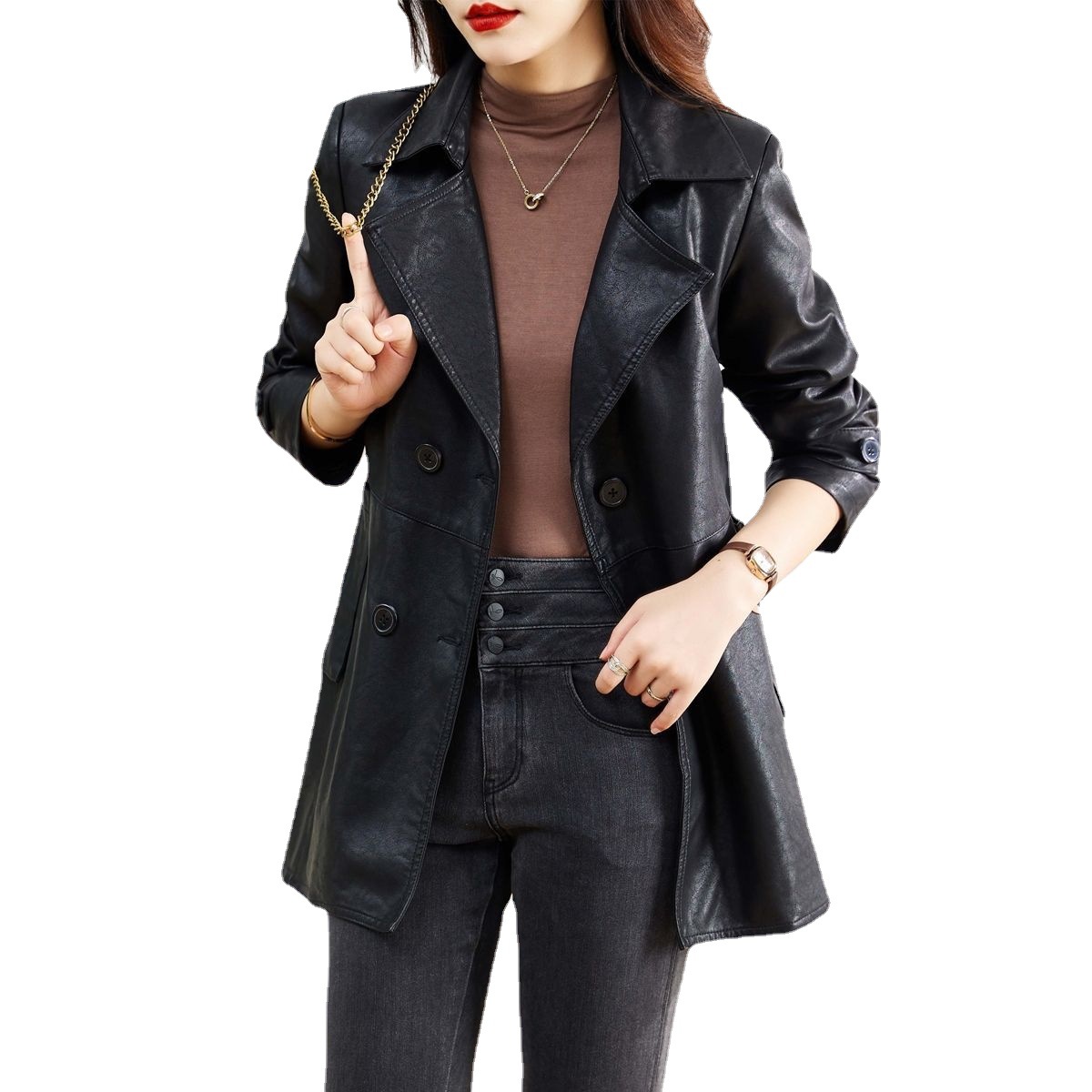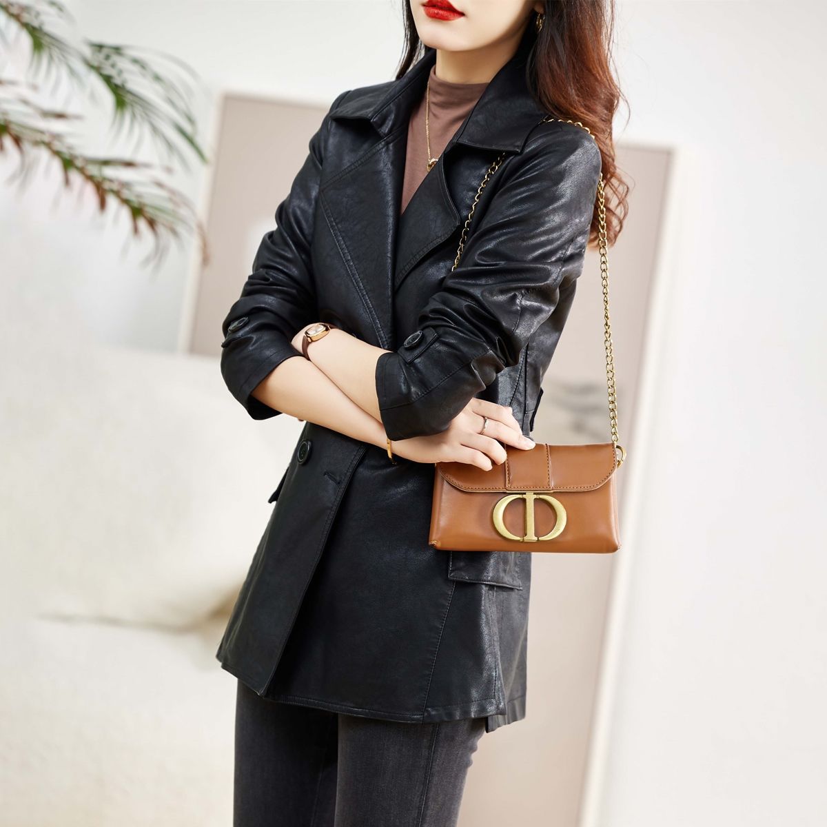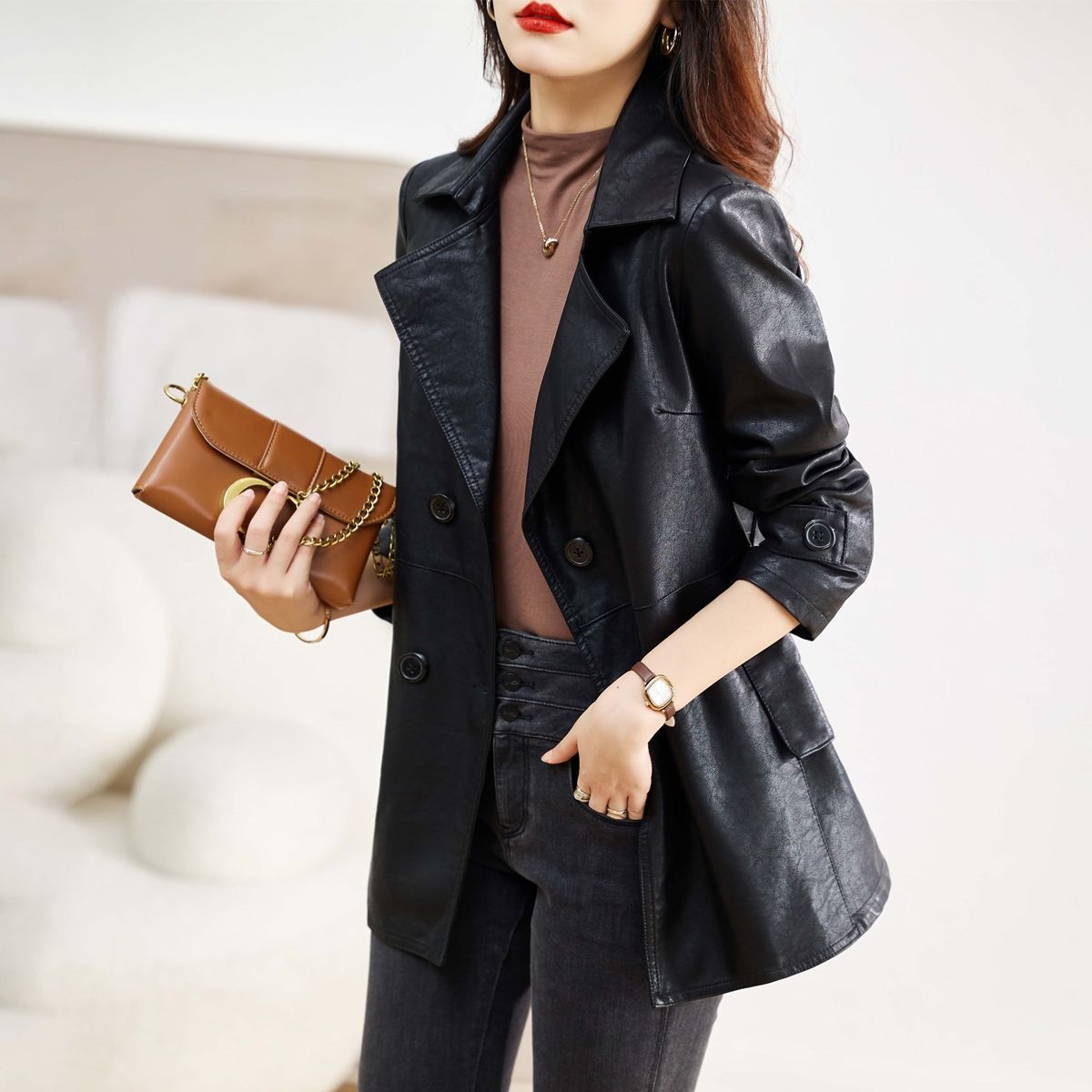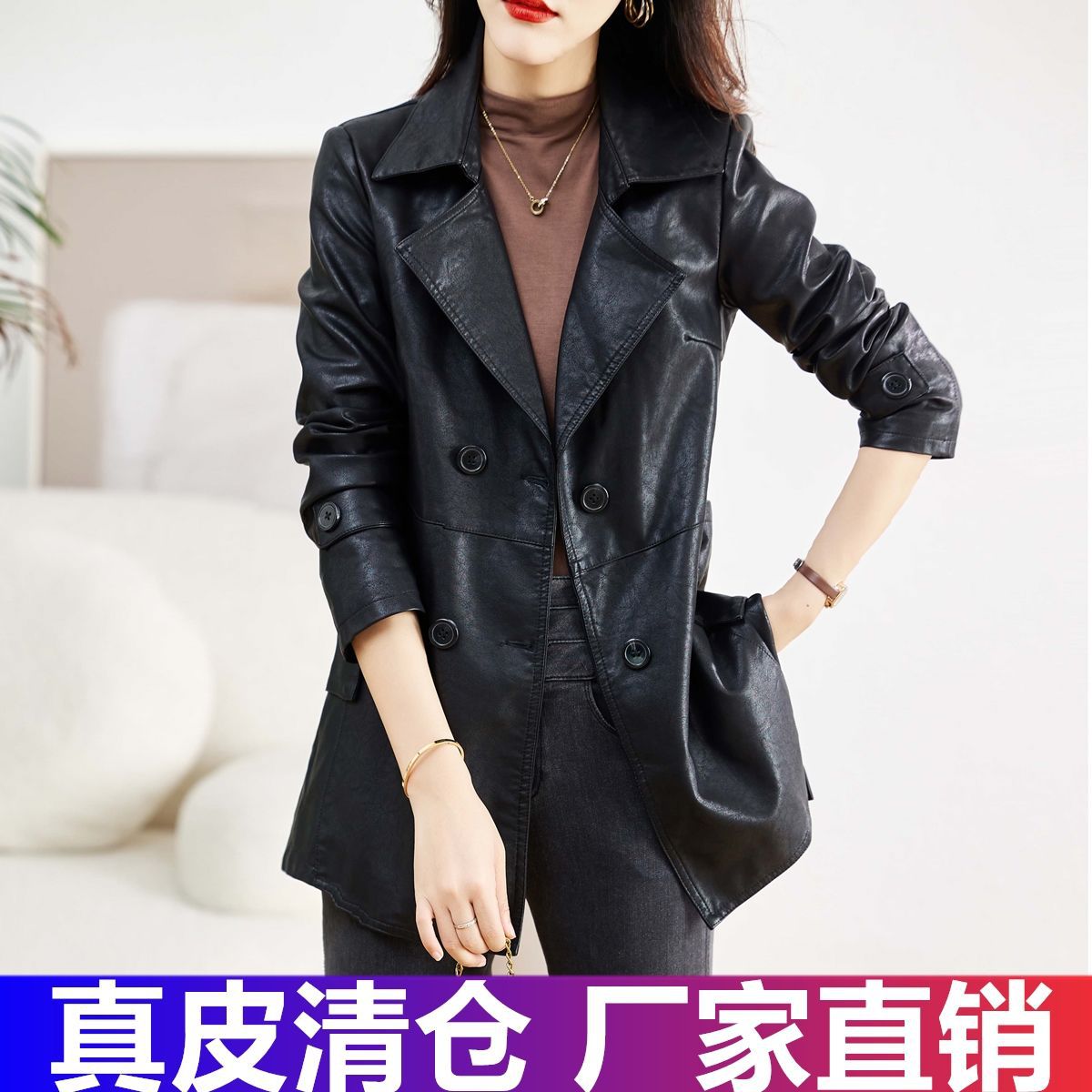 Главная страница > Женская куртка из натуральной кожи Haining, новая Талия, элегантная приталенная Высококачественная кожаная куртка средней длины, модное пальто