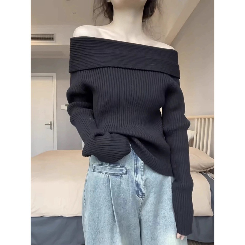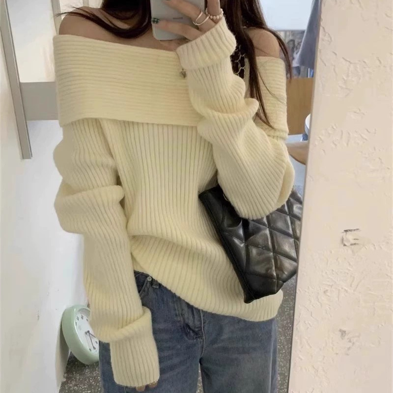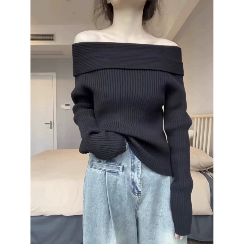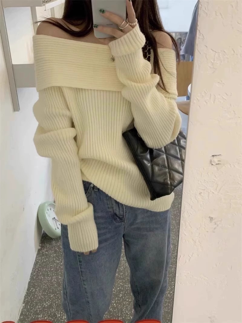 Главная страница > Темперамент ленивый ветер с открытыми плечами дикий свитер куртка женская осень-зима новый высокий стиль нишевой топ