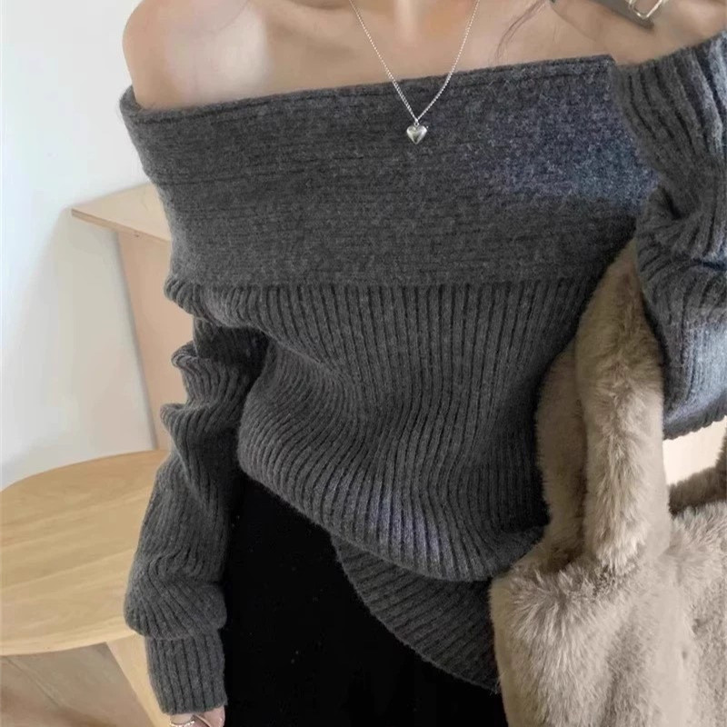 Темперамент ленивый ветер с открытыми плечами дикий свитер куртка женская осень-зима новый высокий стиль нишевой топ