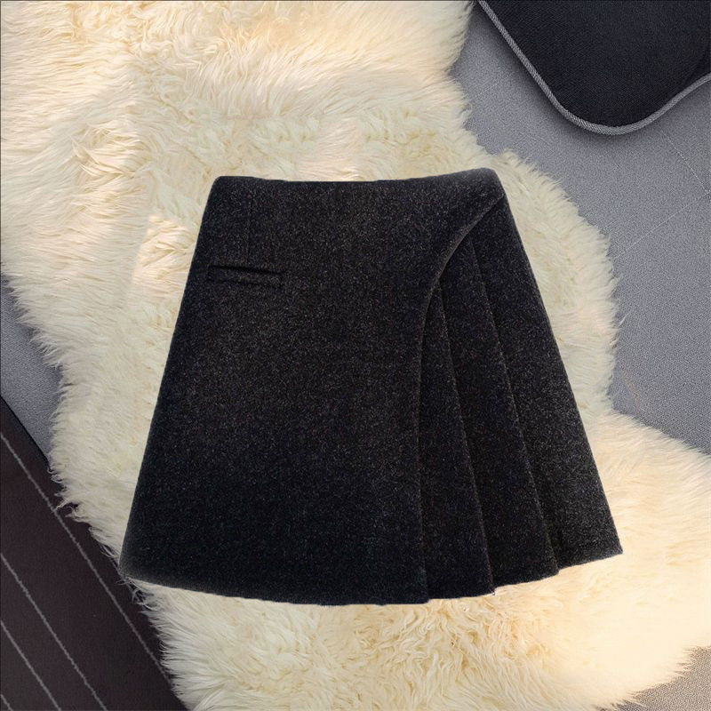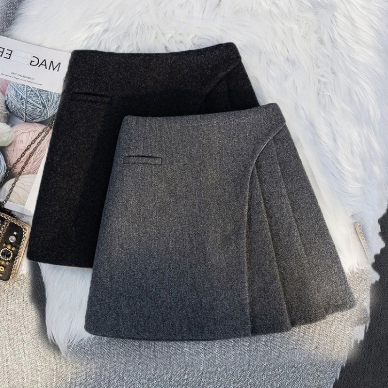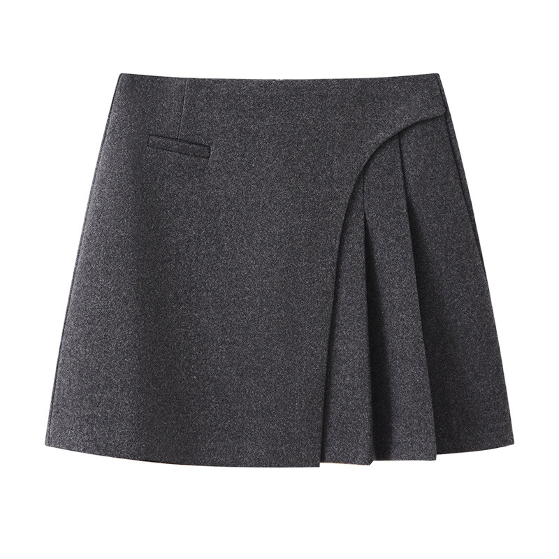 Главная страница > Серая шерстяная юбка осень-зима 2025, новая, высокая талия, стройнящая, асимметричная, с открытыми складками, короткая юбка