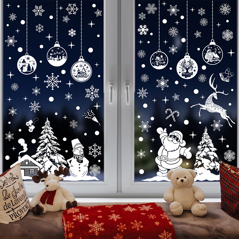 Главная страница > 2025 трансграничные рождественские белые наклейки на окна Санта-Клаус подвесной шар Рождественский лось торговый центр оконное стекло электростатические наклейки