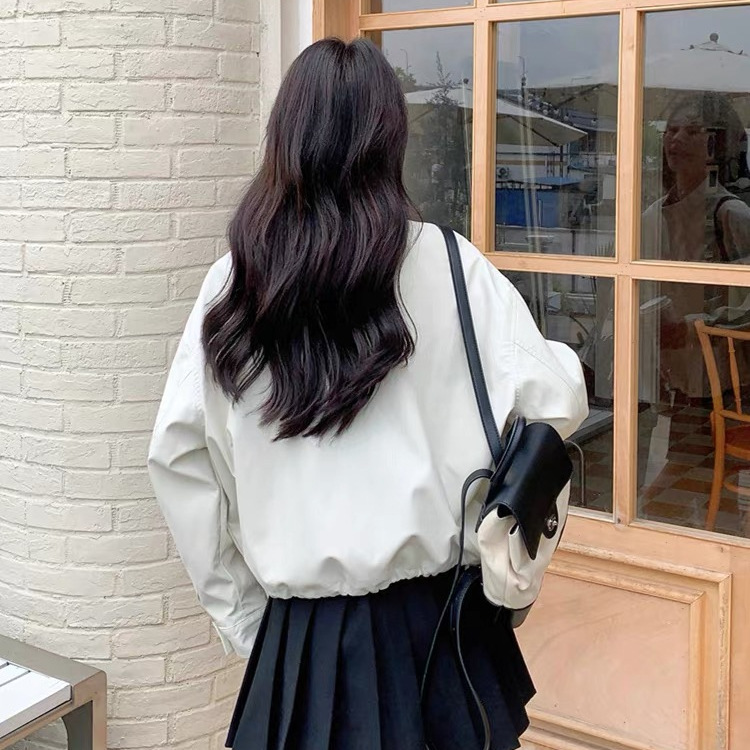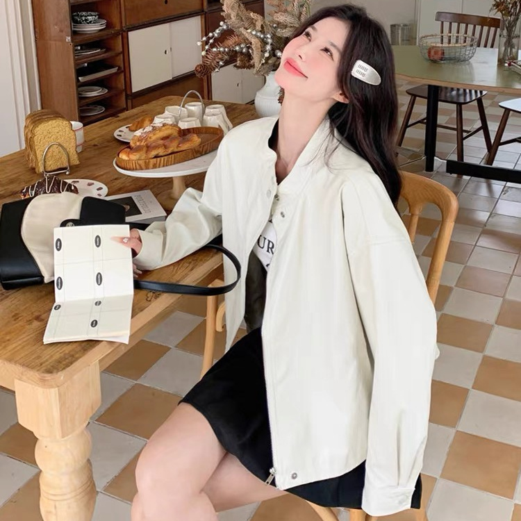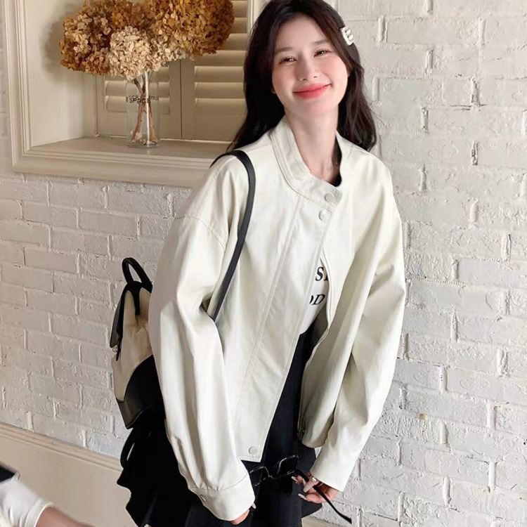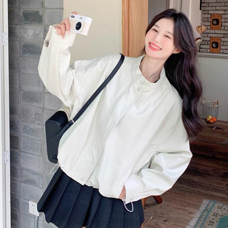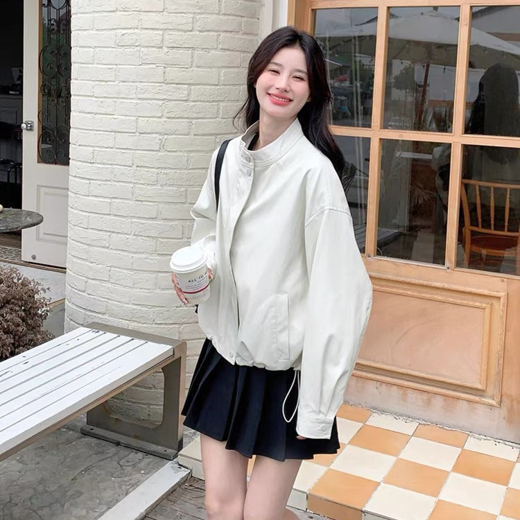 Главная страница > Дизайн Чувство повседневная короткая куртка с воротником женская весна и осень 2025 новый сплошной цвет универсальная повседневная куртка oversize