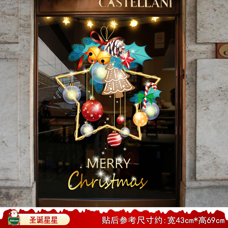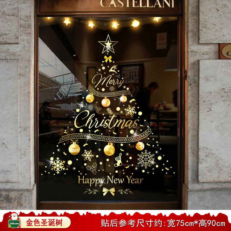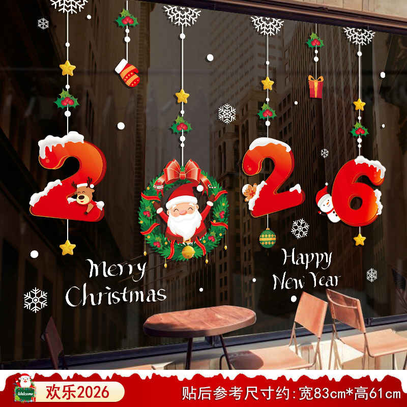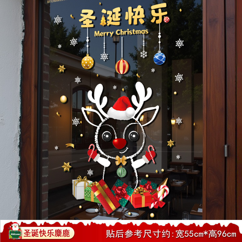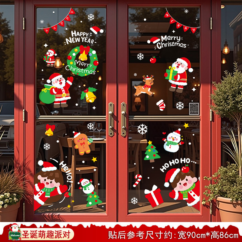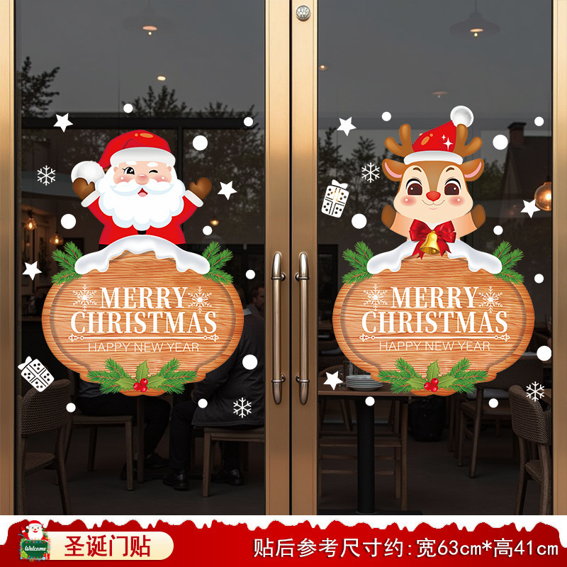 08. Рождественская наклейка на дверь счастливой [статическая без клея] [двусторонняя наклейка того же цвета]