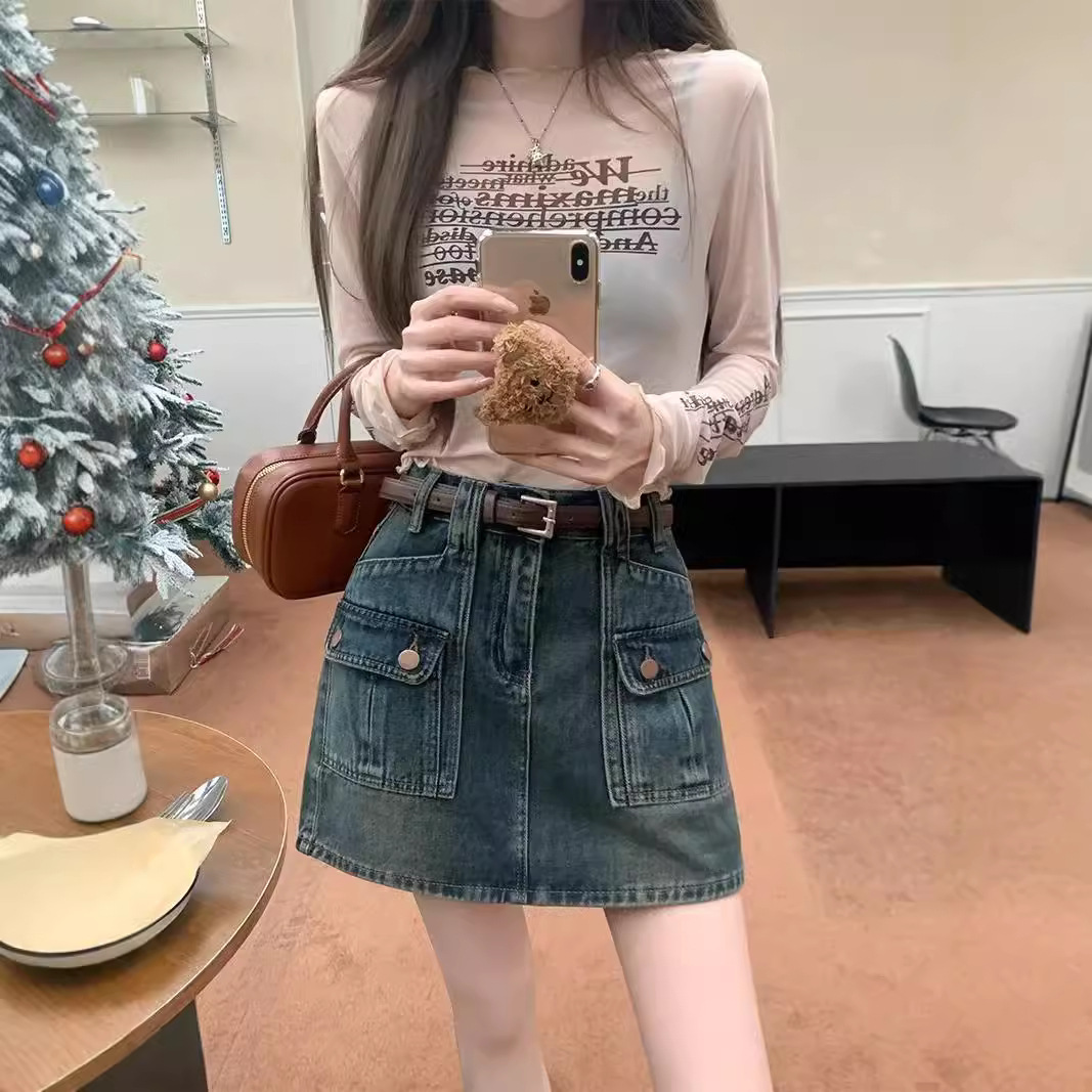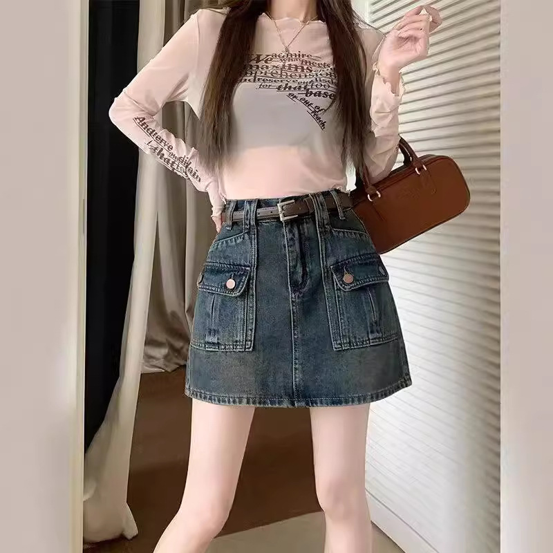Ретро джинсовая юбка-бюст женская весна-лето новая высокая талия тонкая