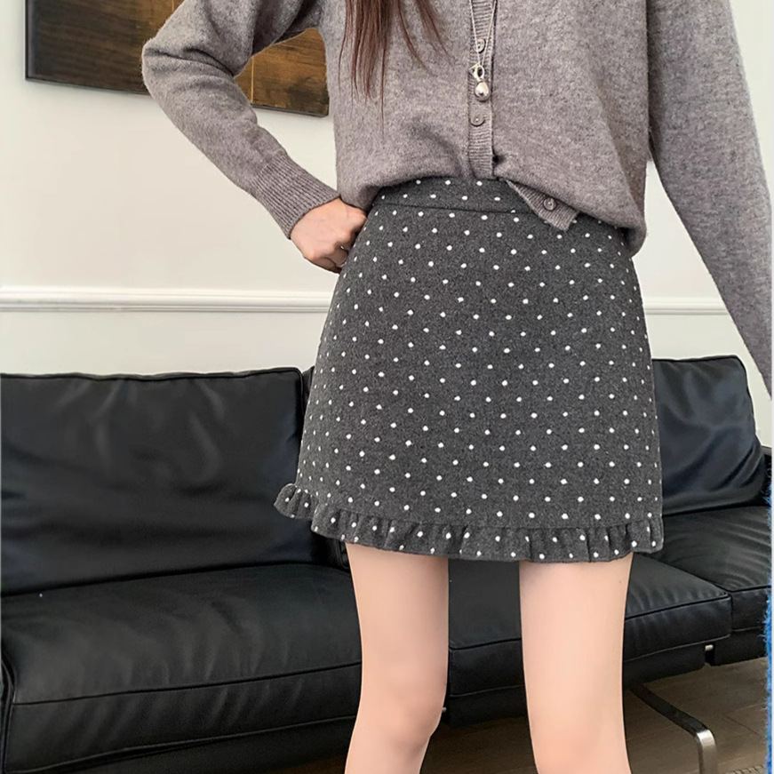 Главная страница > Корейская линия носит серую волнистую кружевную шерстяную юбку