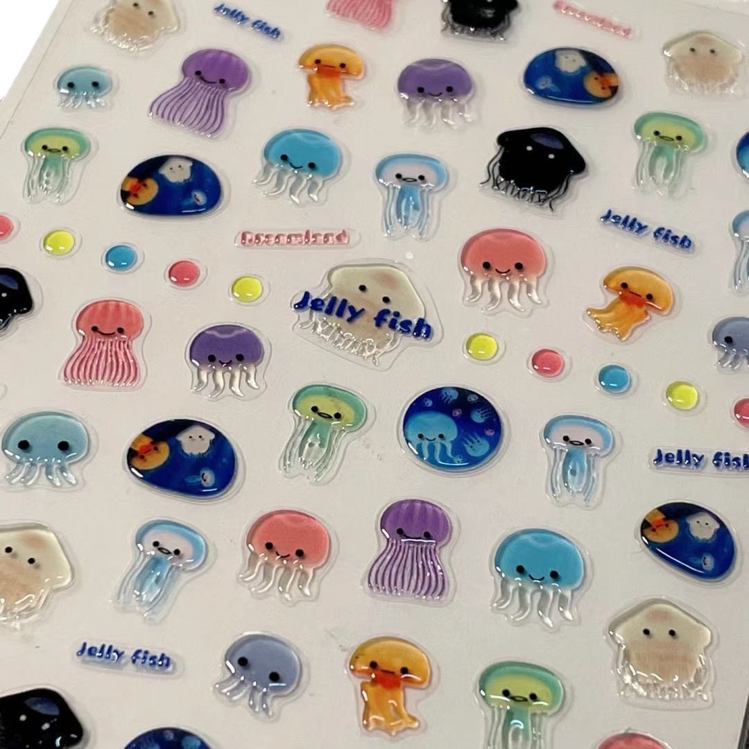 Маленькая красная книга, красочные желейные наклейки для ногтей, модные океанские медузы, милые клейкие 5D новые наклейки для ногтей