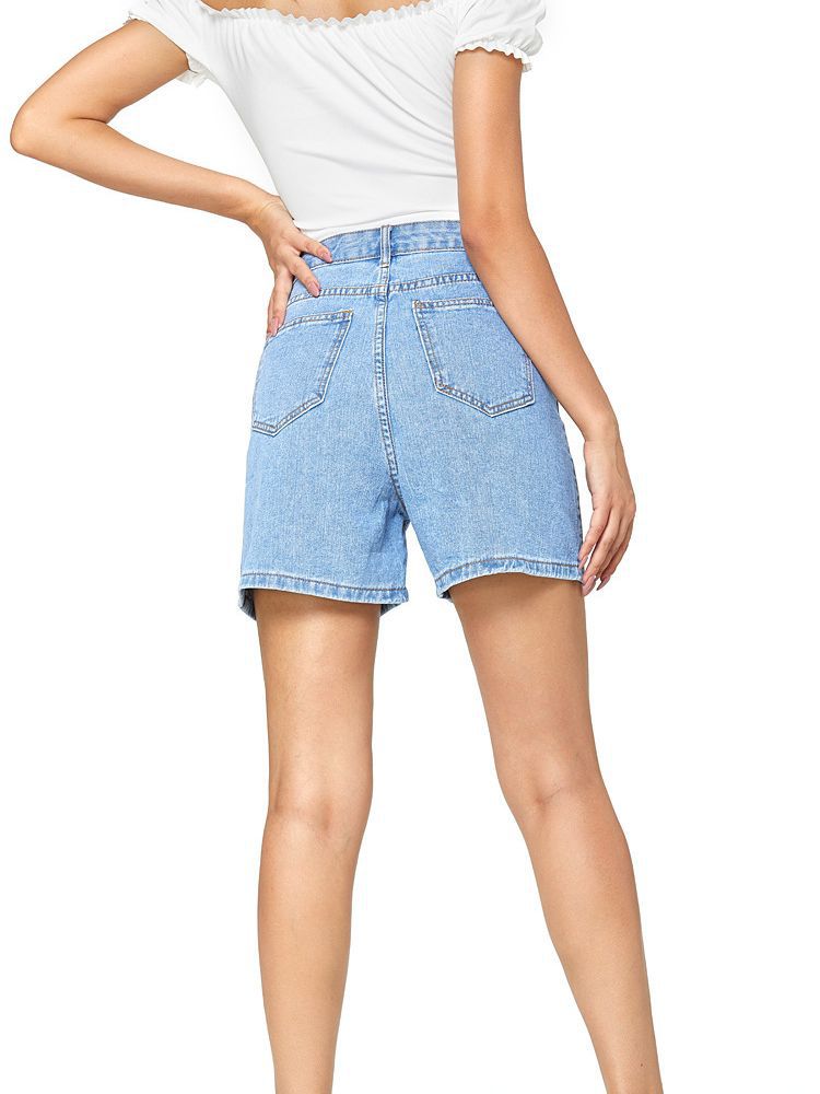 Трансграничная экспортная женская одежда. Новые европейские и американские джинсовые шорты с высокой талией для женщин. Лето 2025. Свободные утягивающие брюки А-силуэта с широкими штанинами.