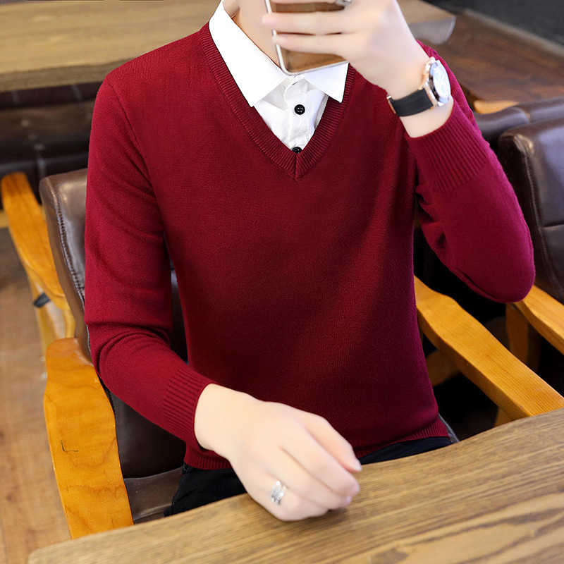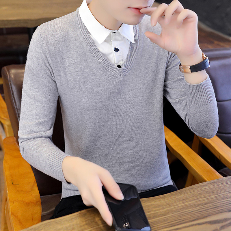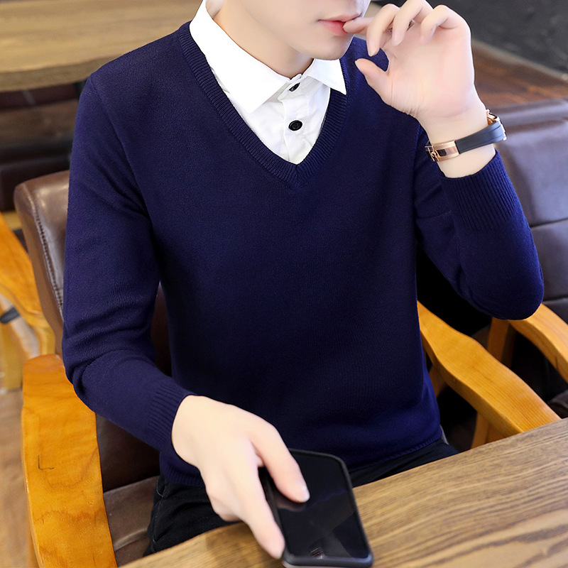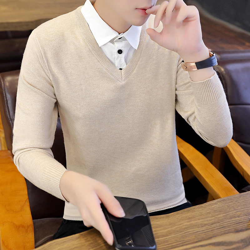 Главная страница > Рубашка воротник поддельный свитер из двух частей мужской корейской версии осенний и зимний новый тренд трикотажный воротник молодежный толстый нижний свитер