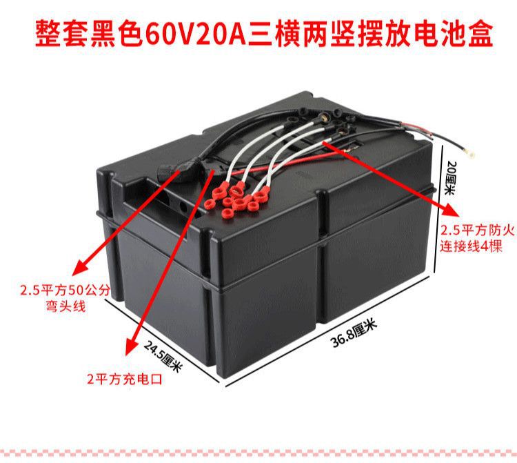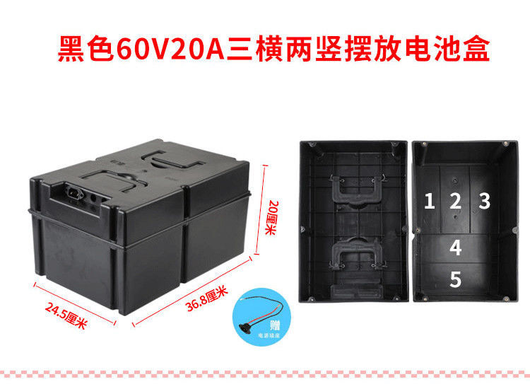 Черный 60V20A Три горизонтальных и два вертикальных батарейного отсека