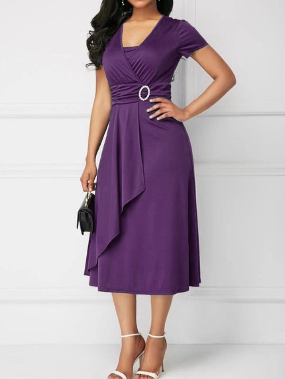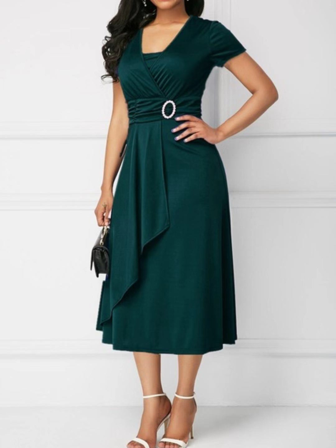2024 Amazon желает независимый сайт Европейская и американская трансграничная мода элегантная асимметричная большая юбка платье с v-образным вырезом