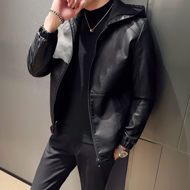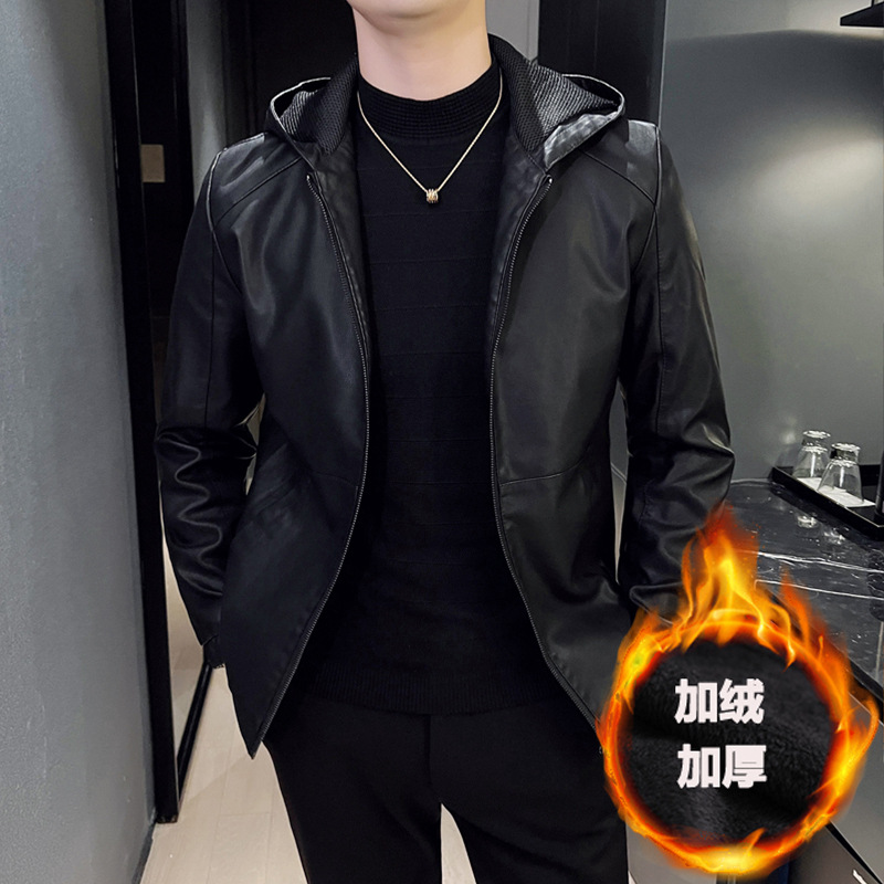 Главная страница > Плюшевый и утолщенный костюм Паркер мужской осенний и зимний с капюшоном, стройный досуг, красивый мотоциклетный кожаный пиджак, короткая ветрозащитная куртка