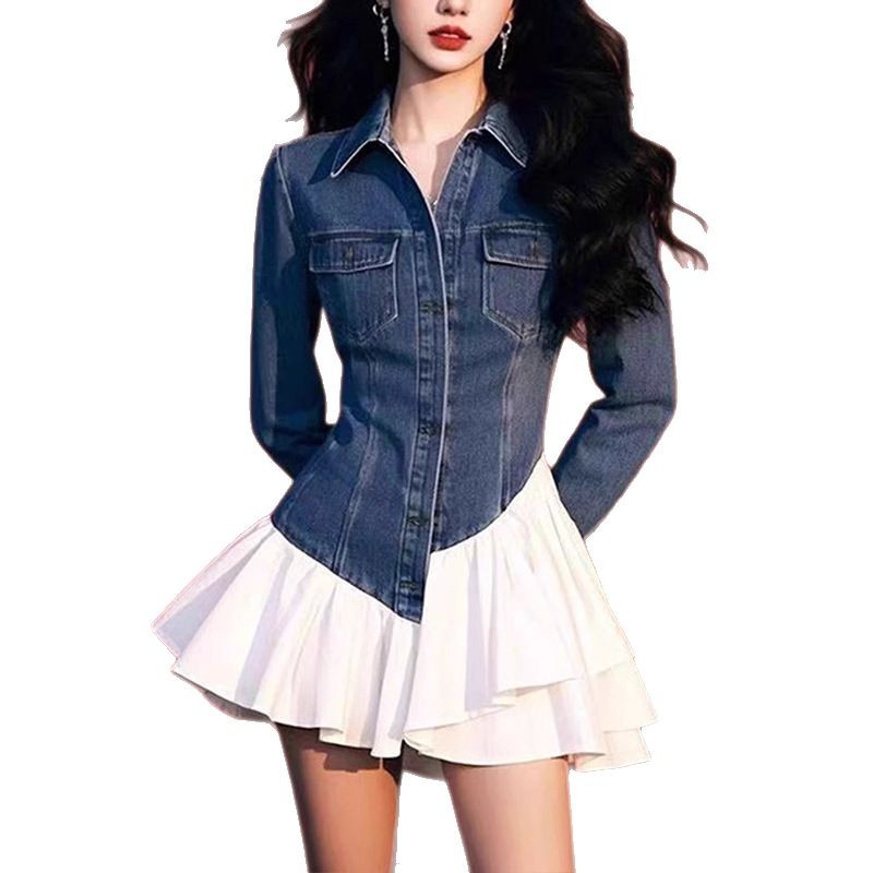 Главная страница > Новое модное женское платье-двойка из денима, элегантное, с комбинированными деталями, короткая юбка, весна 2025 года.