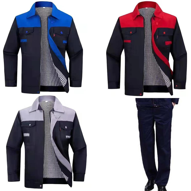 Мужской двухслойный рабочий костюм на весну и осень, спецодежда для авторемонта с логотипом и вышивкой, полиэстер-хлопок, утепленный и защищающий от холода.