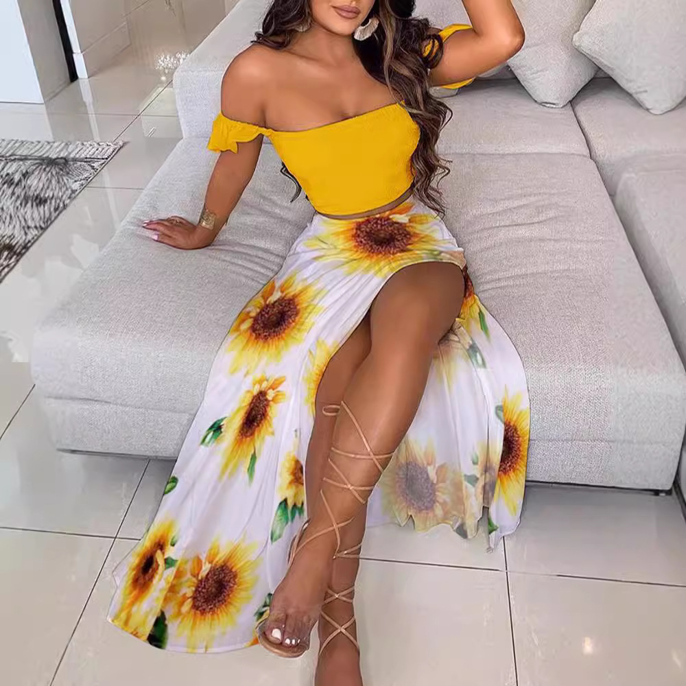 Главная страница > Летнее платье-костюм в стиле бохо, французский крой, длинная юбка, принт, средняя длина, ретро, 2024, Европа и Америка