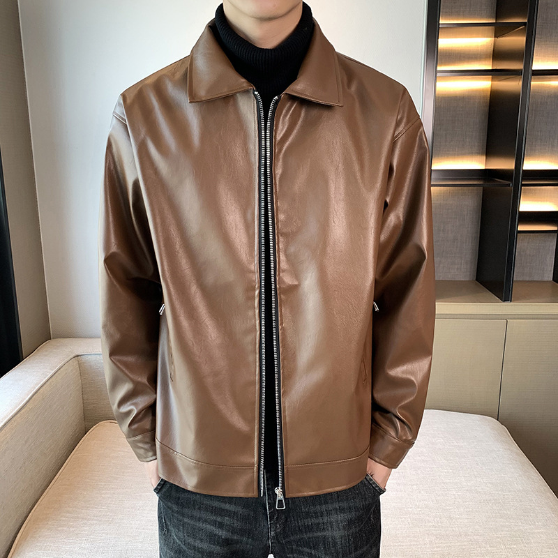 Главная страница > 2024 Весенняя и Осенняя кожаная куртка с лацканом для мужчин Повседневный прилив, американский мотоцикл, дикая подростковая ретро-кожаная куртка из пупа