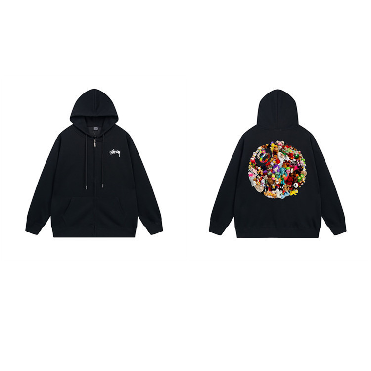 Главная страница > Молния с флисом с капюшоном свитер европейский и американский алфавит парад черный 8 для мужчин и женщин повседневные 12 свитеров на молнии STU