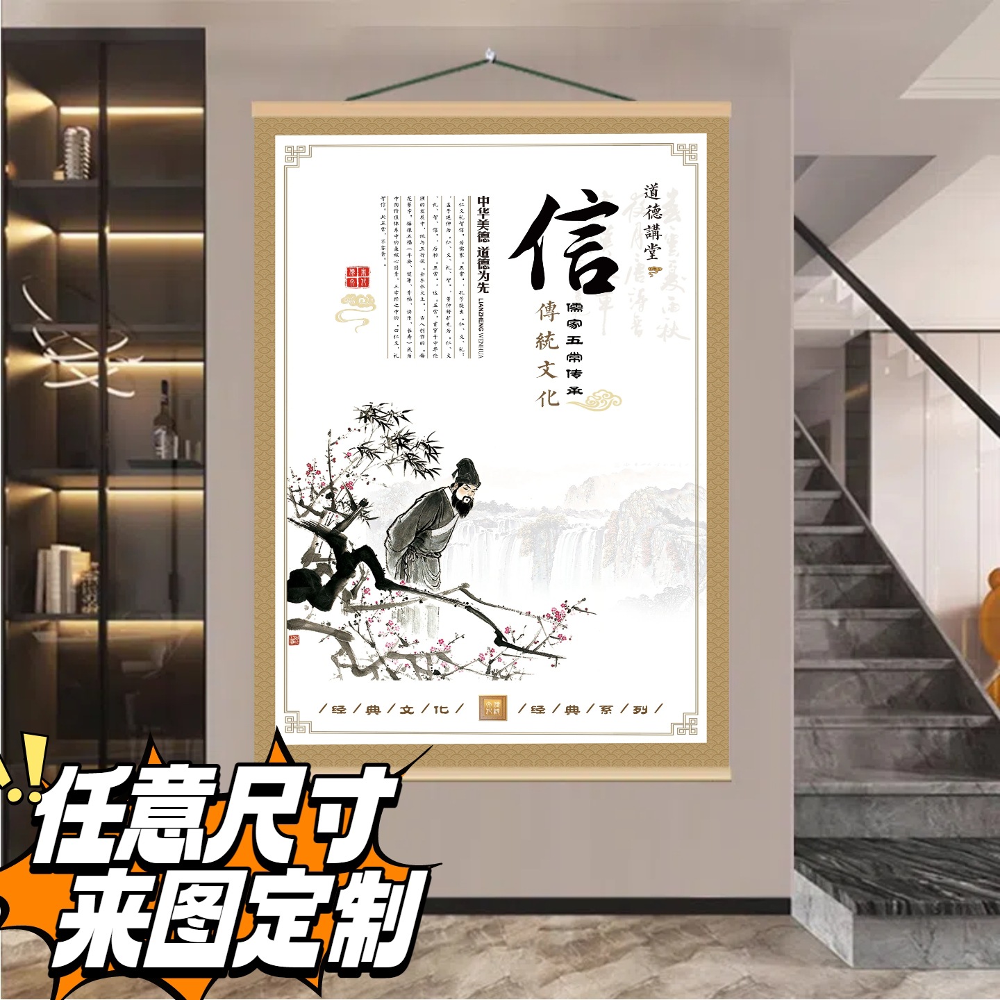 Главная страница > Декор для классных комнат с традиционными китайскими классическими поэтическими произведениями о доброте, справедливости, этикете, интеллекте и доверии; наклейки на стены и подвесные картины для коридоров начальных и средних школ в новом китайском стиле.