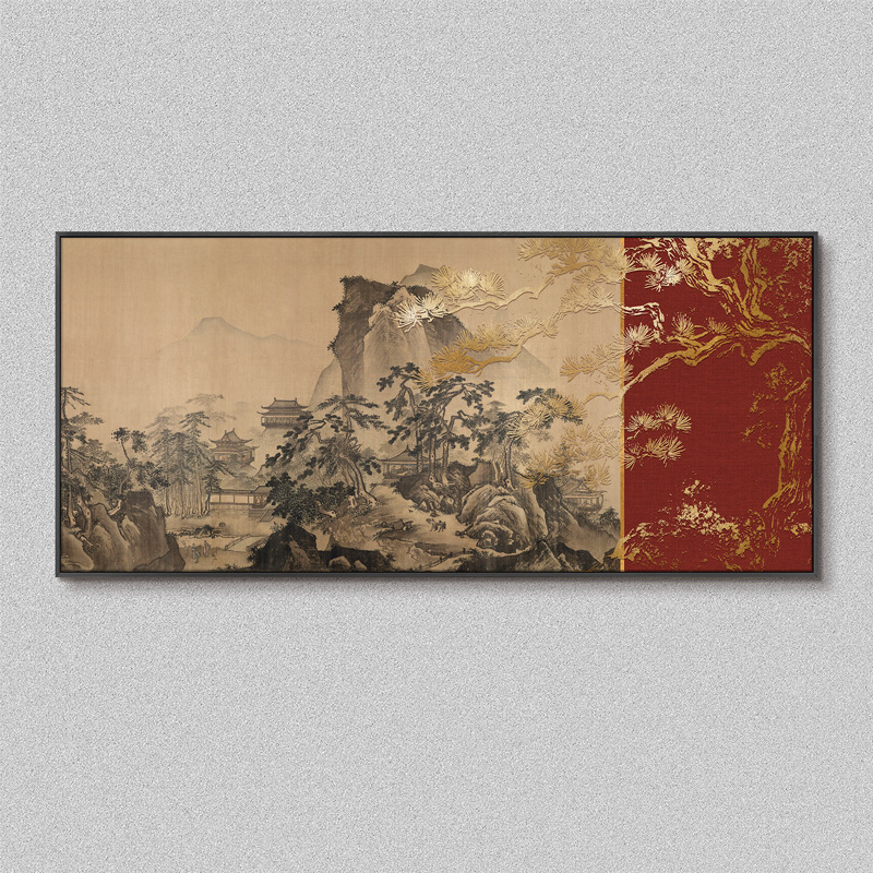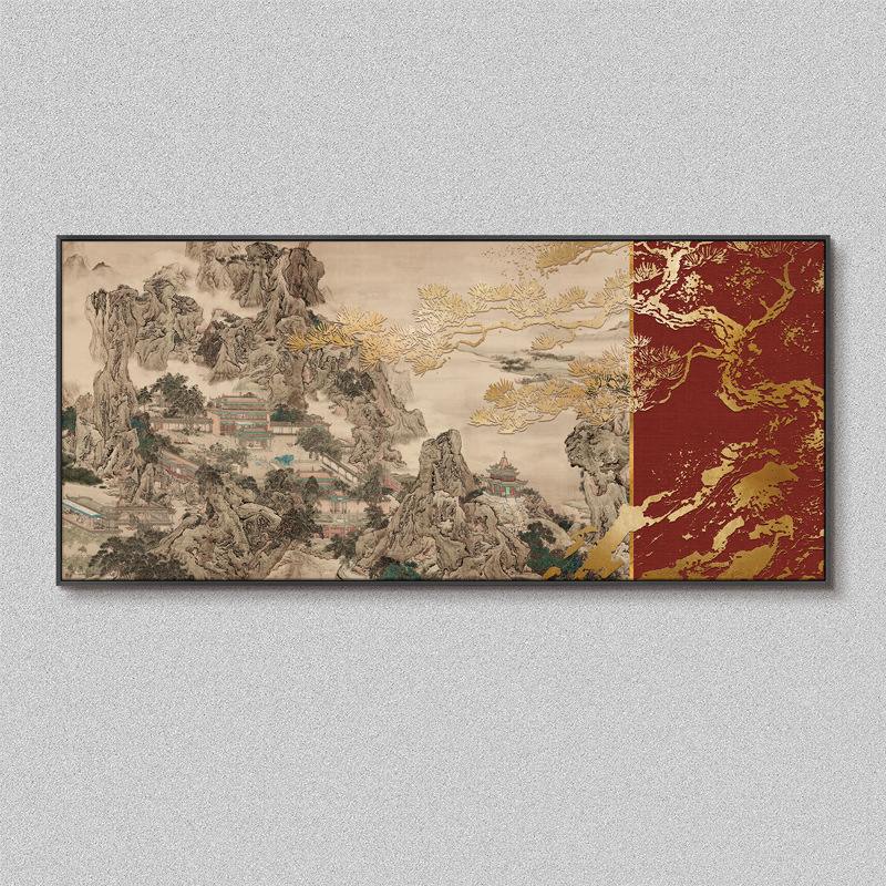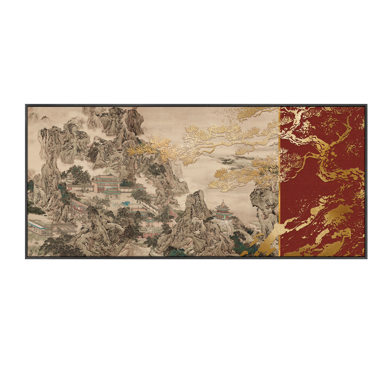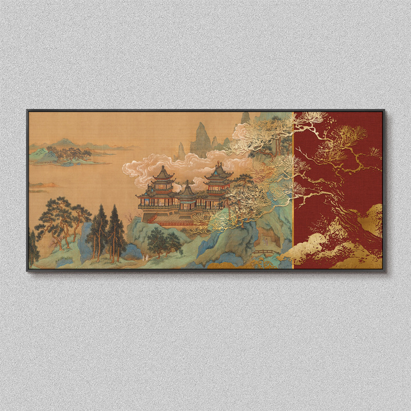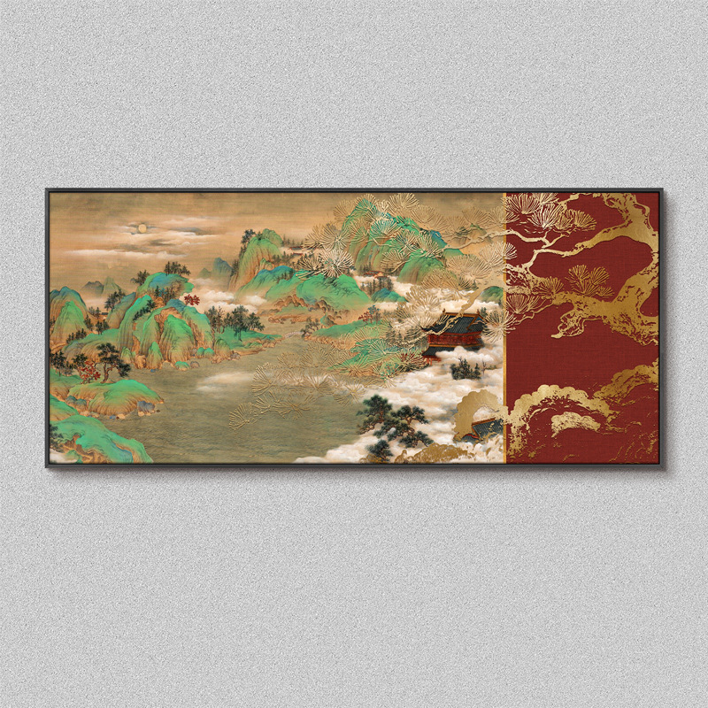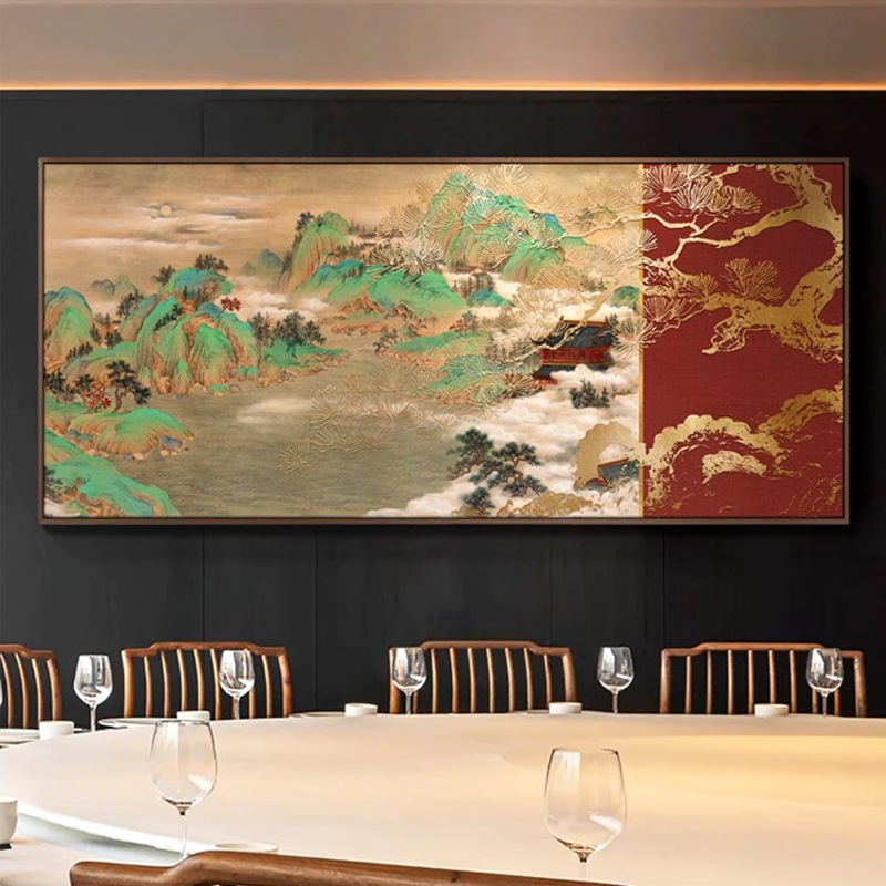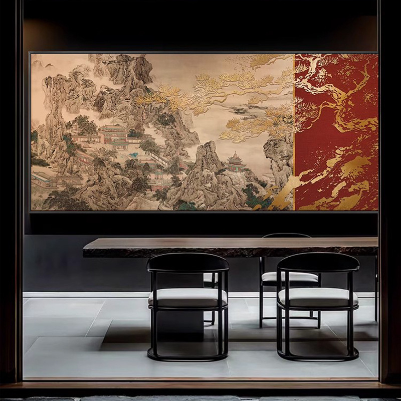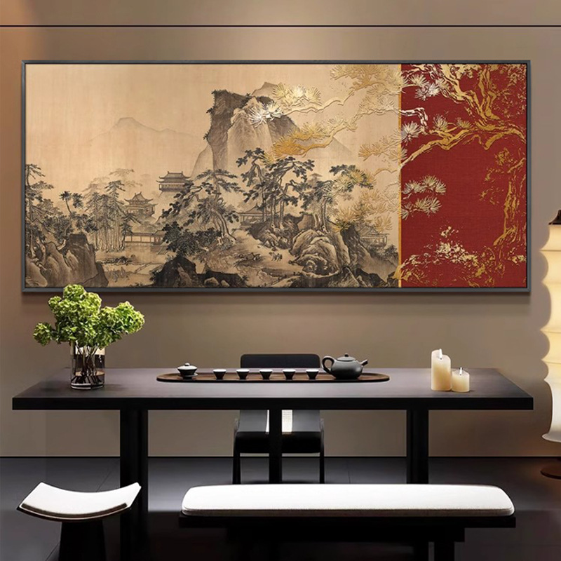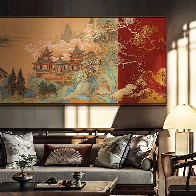 Новый китайский стиль гостиной с диваном фон стены декоративная живопись