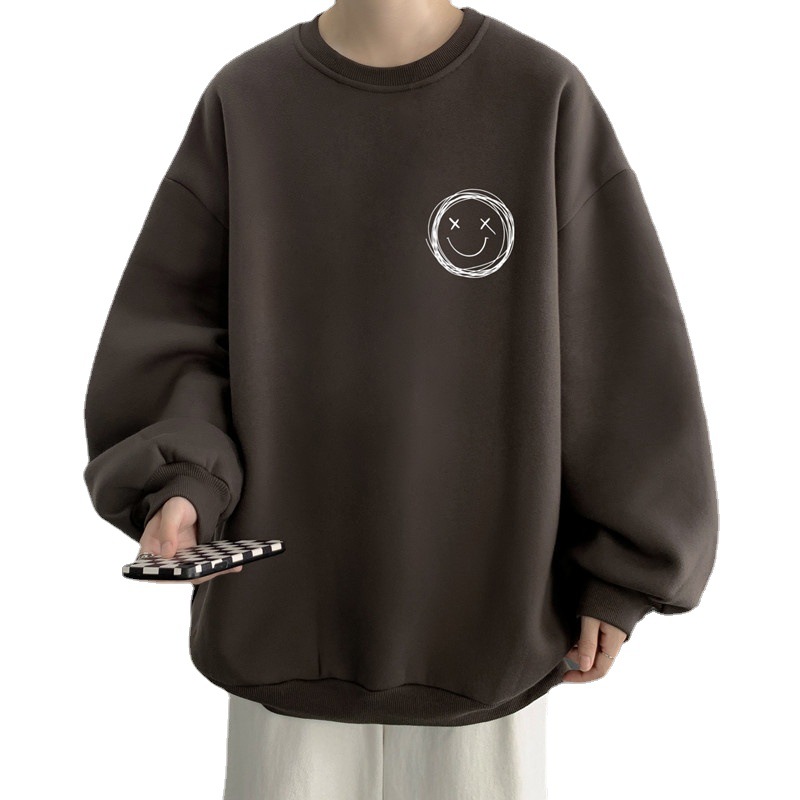 Главная страница > Мужской свитер с круглым вырезом и принтом на флисовой подкладке, белый СВОБОДНЫЙ Модный базовый топ с капюшоном в Корейском стиле для пар