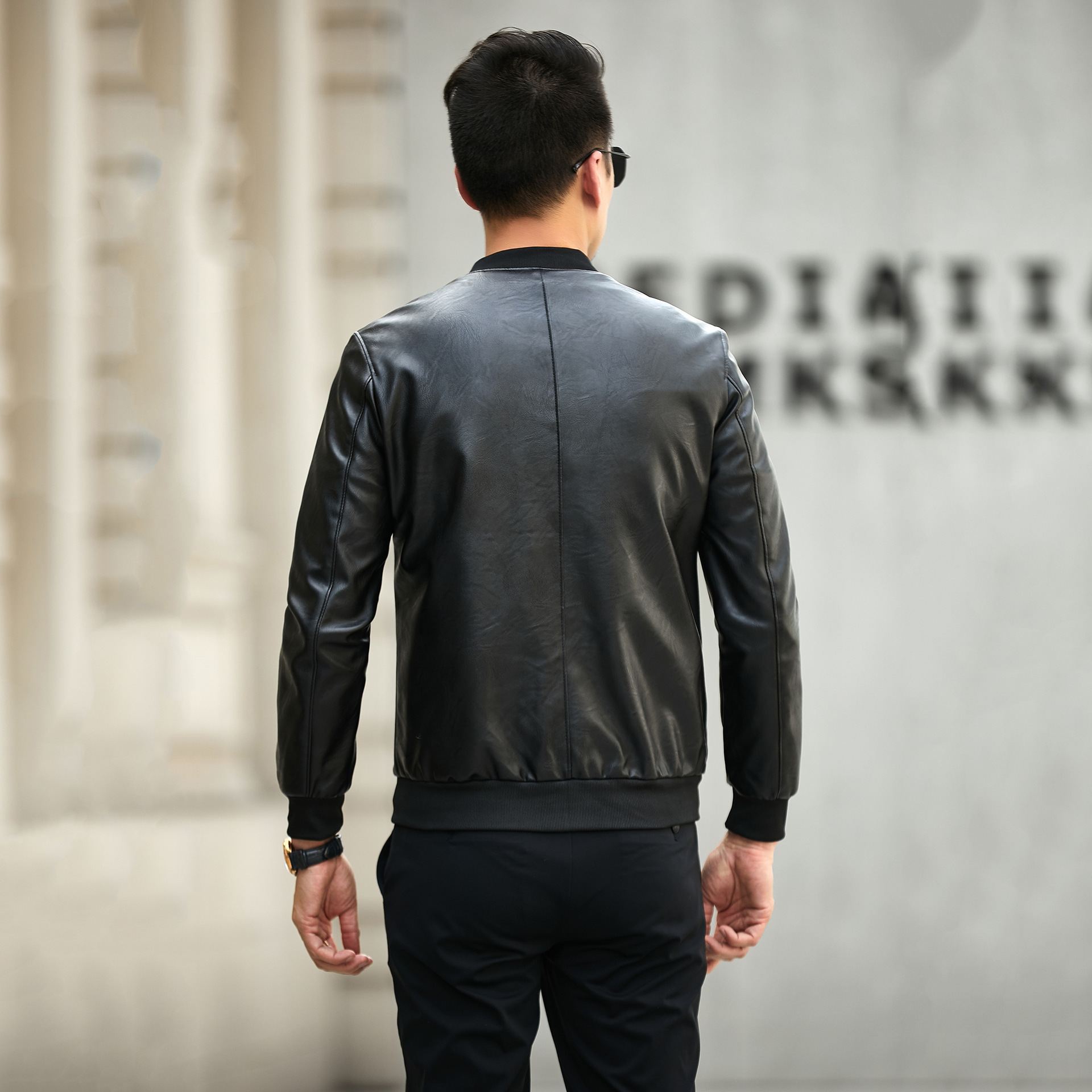 Главная страница > Кожаная куртка с Бейсбольным воротником, мужская осенне-зимняя куртка с воротником, приталенная Повседневная Летающая куртка в Корейском стиле для молодежи среднего возраста, велосипедный костюм из искусственной кожи