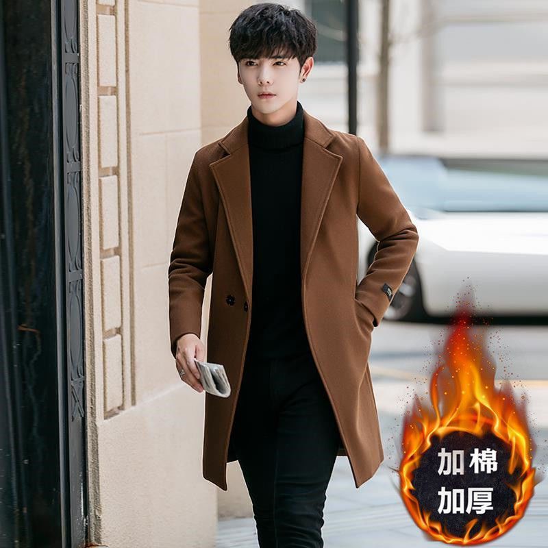 Главная страница > Мужская ветровка осень-зима 2022 года корейская версия модной средней и длинной ветровки мужская стройная шерстяная куртка