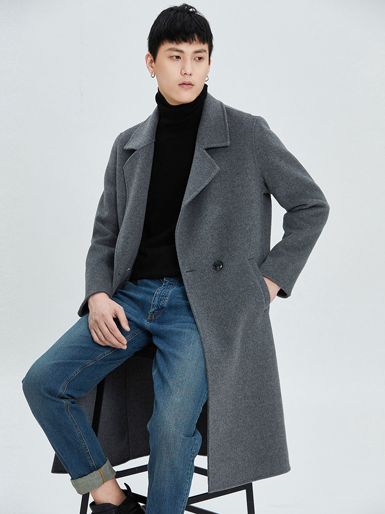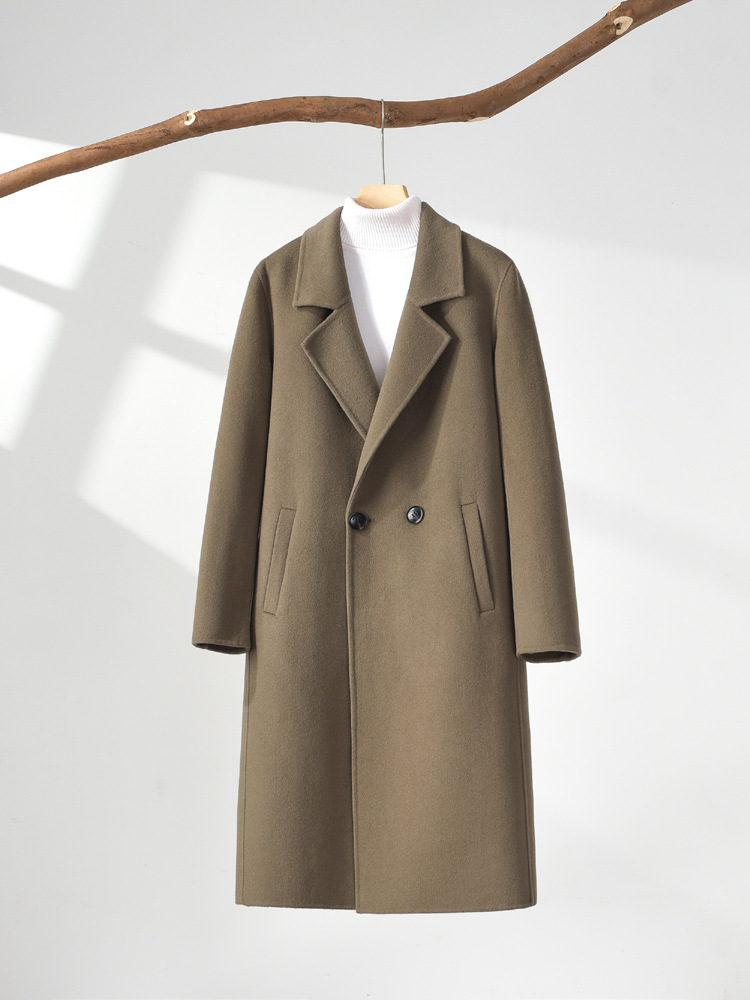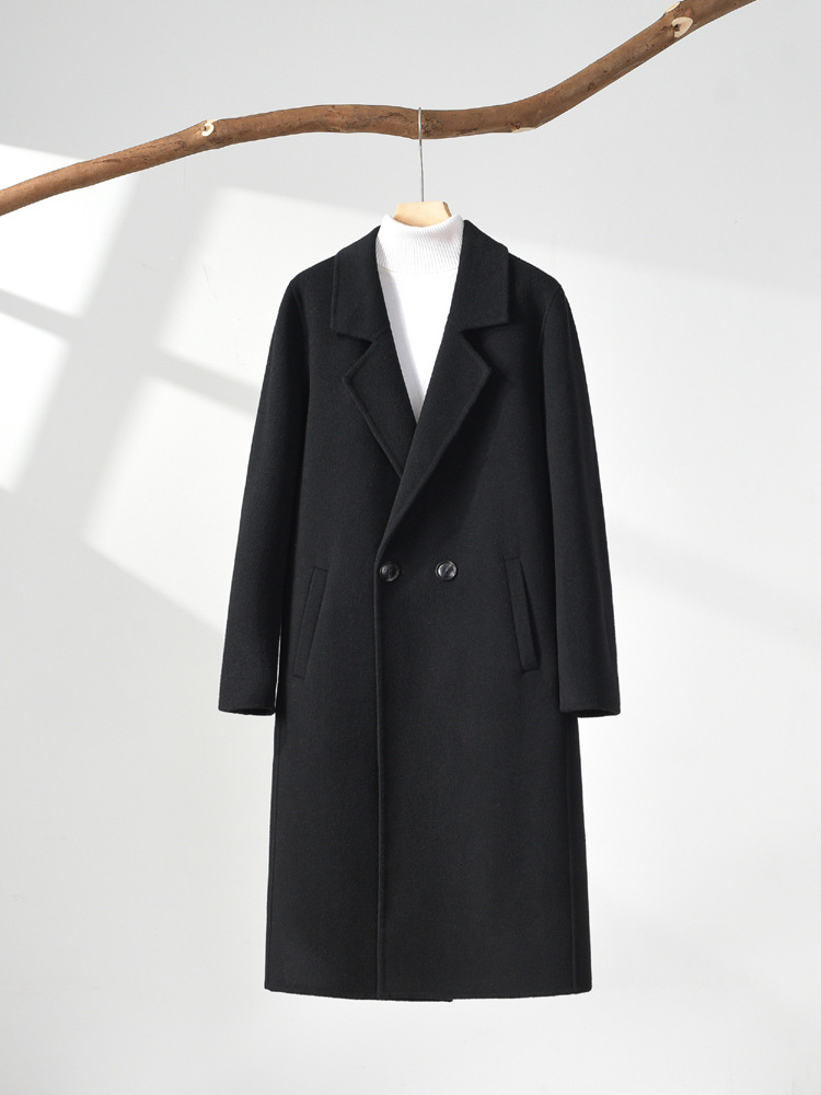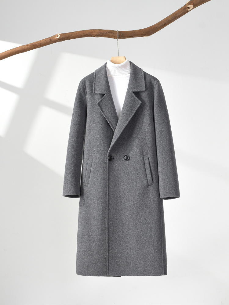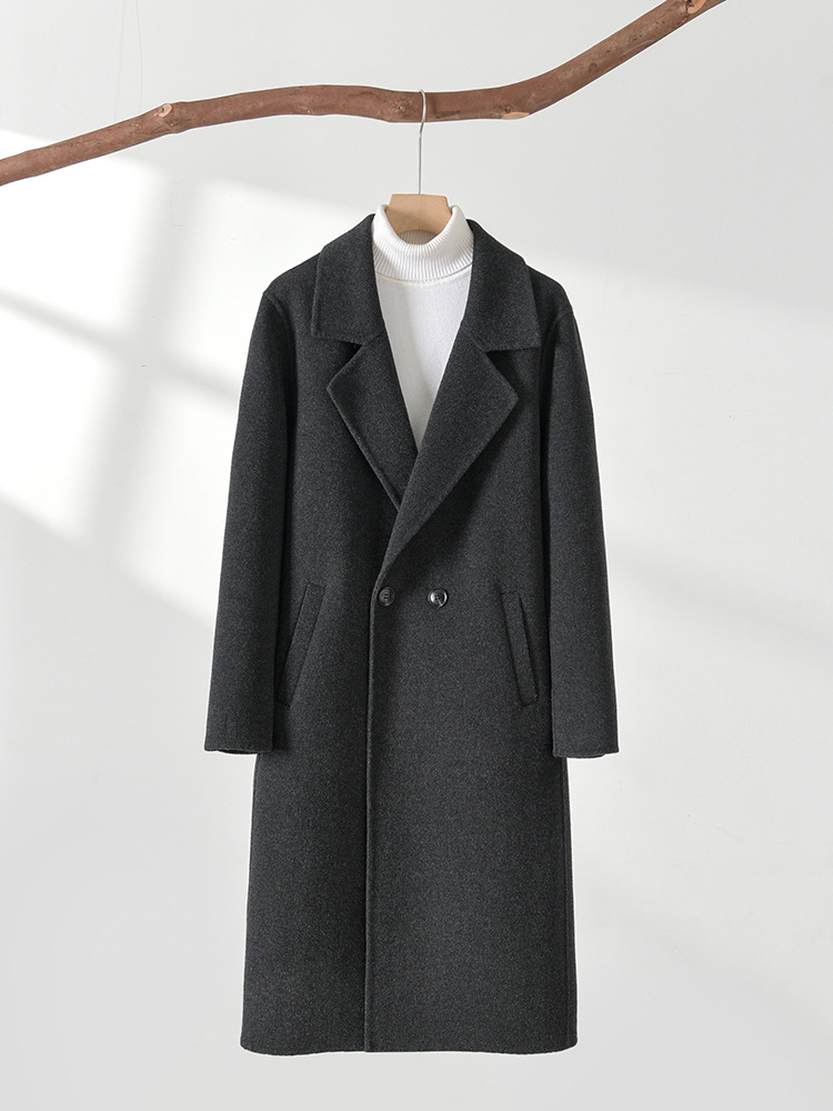 Главная страница > Зимнее двустороннее кашемировое пальто средней длины, мужской двубортный костюм, шерстяной костюм с воротником и открытыми коленями, облегающий Тренч