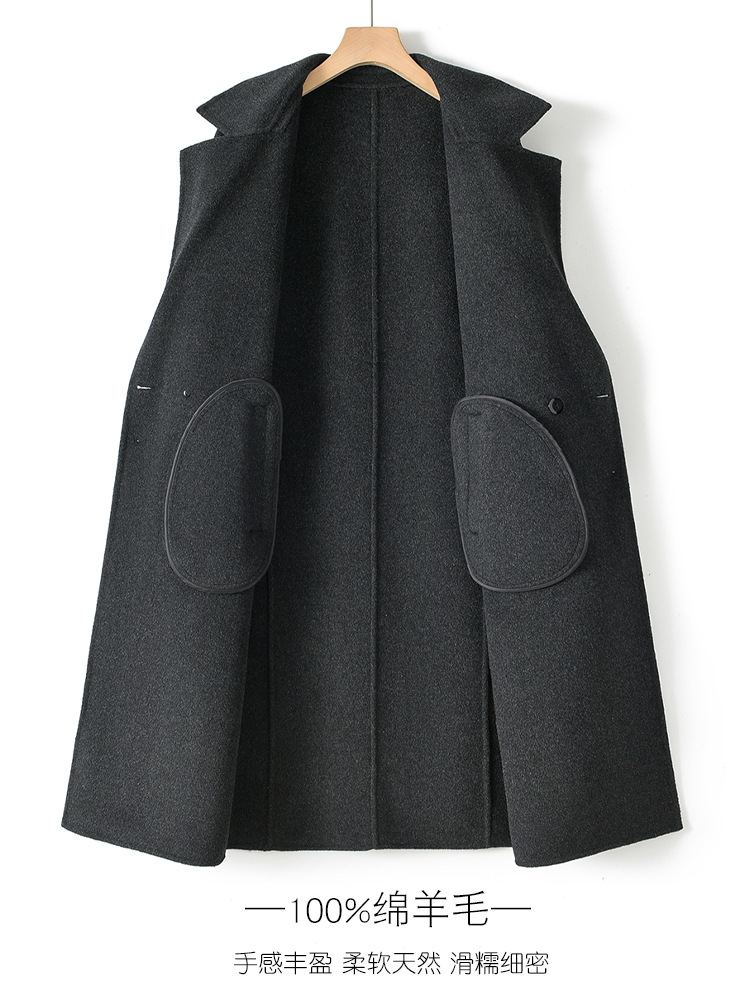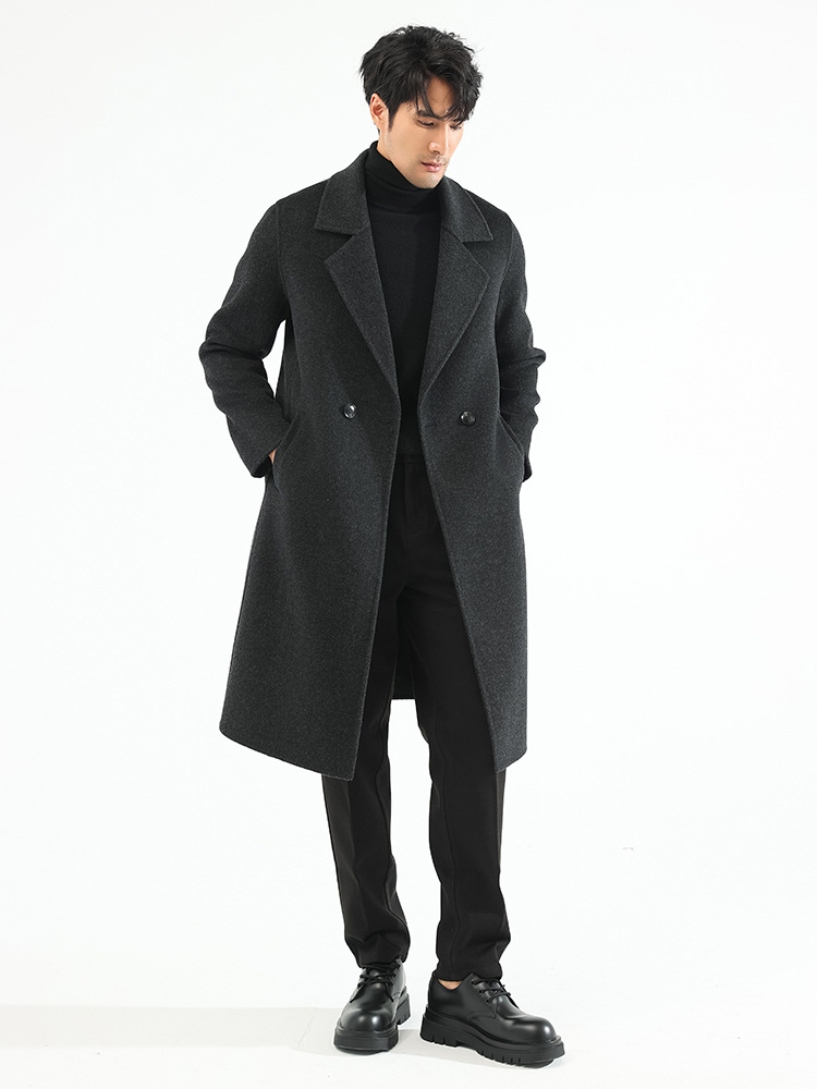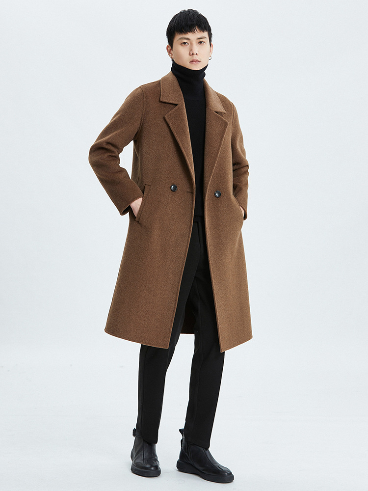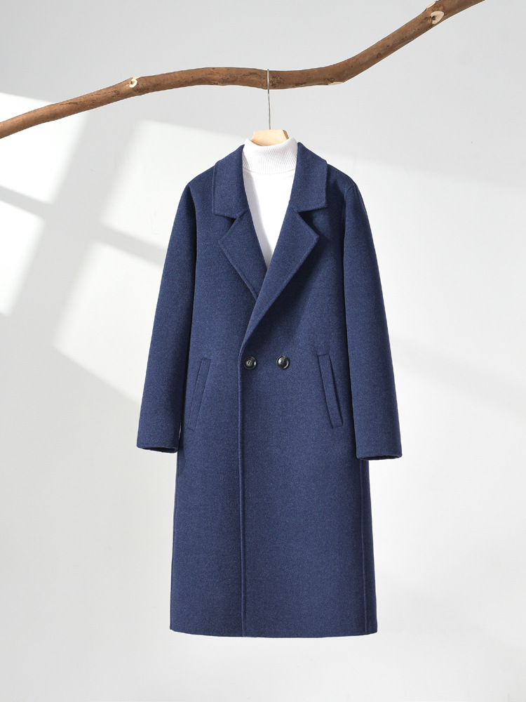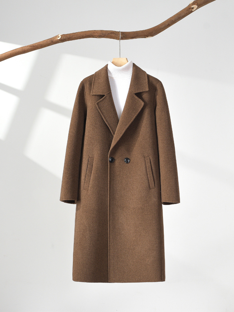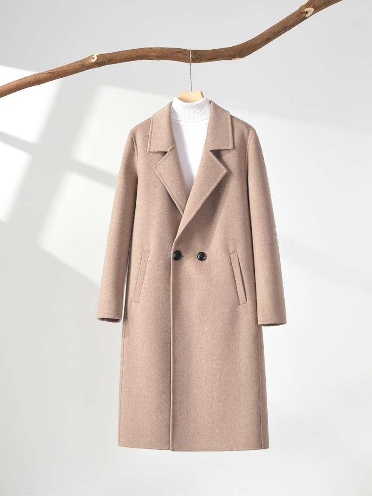 Главная страница > Зимнее двустороннее кашемировое пальто средней длины, мужской двубортный костюм, шерстяной костюм с воротником и открытыми коленями, облегающий Тренч