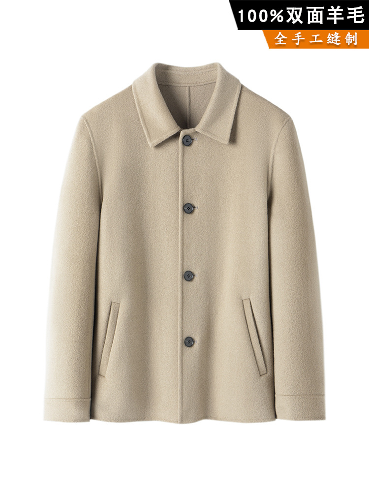 Главная страница > Осенне-зимняя куртка для руководителя, двусторонняя кашемировая мужская двусторонняя шерстяная повседневная куртка с короткими лацканами из 100% шерсти