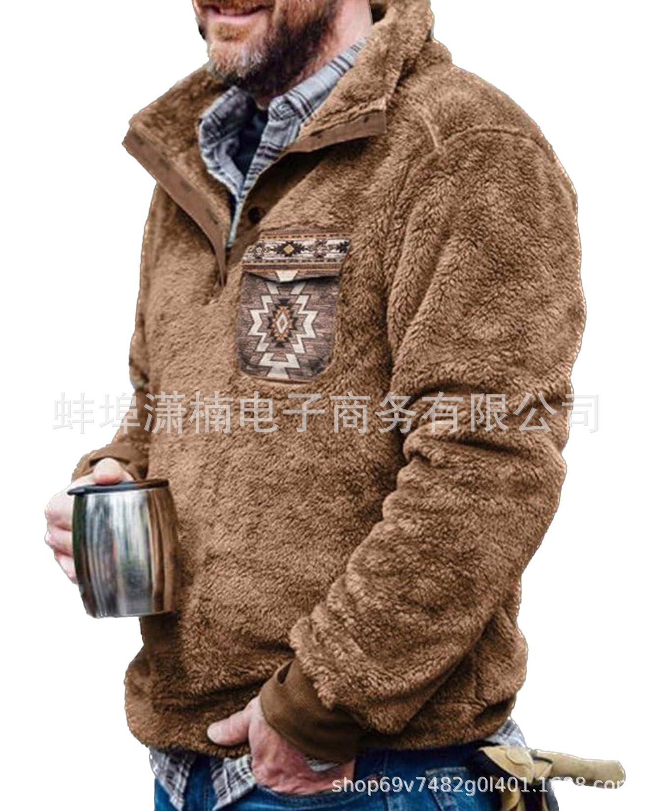 Главная страница > 2022 AliExpress Amazon трансграничный осень/зима мужской европейский и американский отдых фланелевый плюшевый свитер на пуговицах Карманный свитер