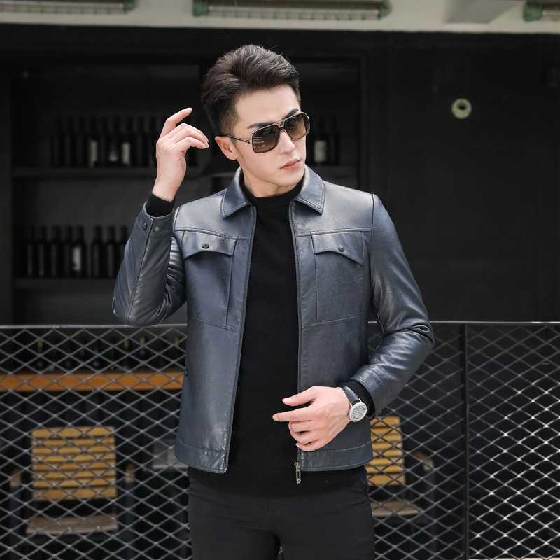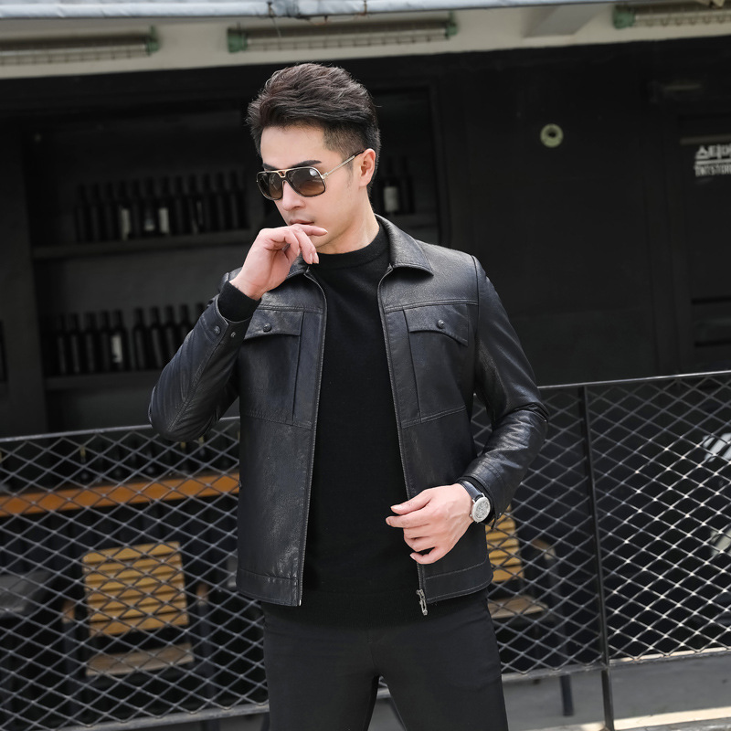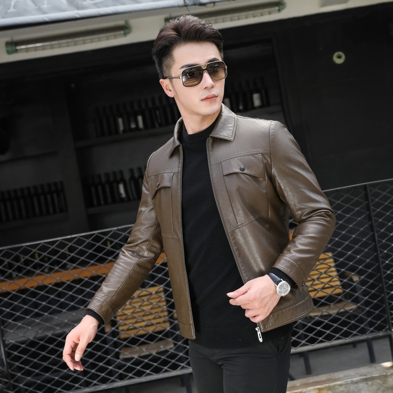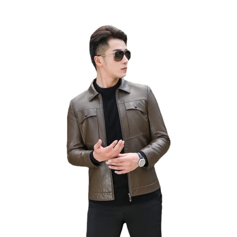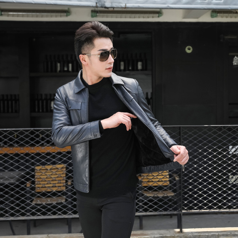 Главная страница > Осенне-зимняя мужская кожаная повседневная Короткая кожаная куртка, Мужская облегающая утепленная мотоциклетная мужская кожаная куртка на флисовой подкладке в Корейском стиле