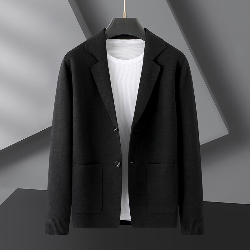 Главная страница > Пухлый мужской весенне-осенний кардиган, свитер, пухлый маленький костюм, Свободный вязаный свитер, повседневная куртка большого размера